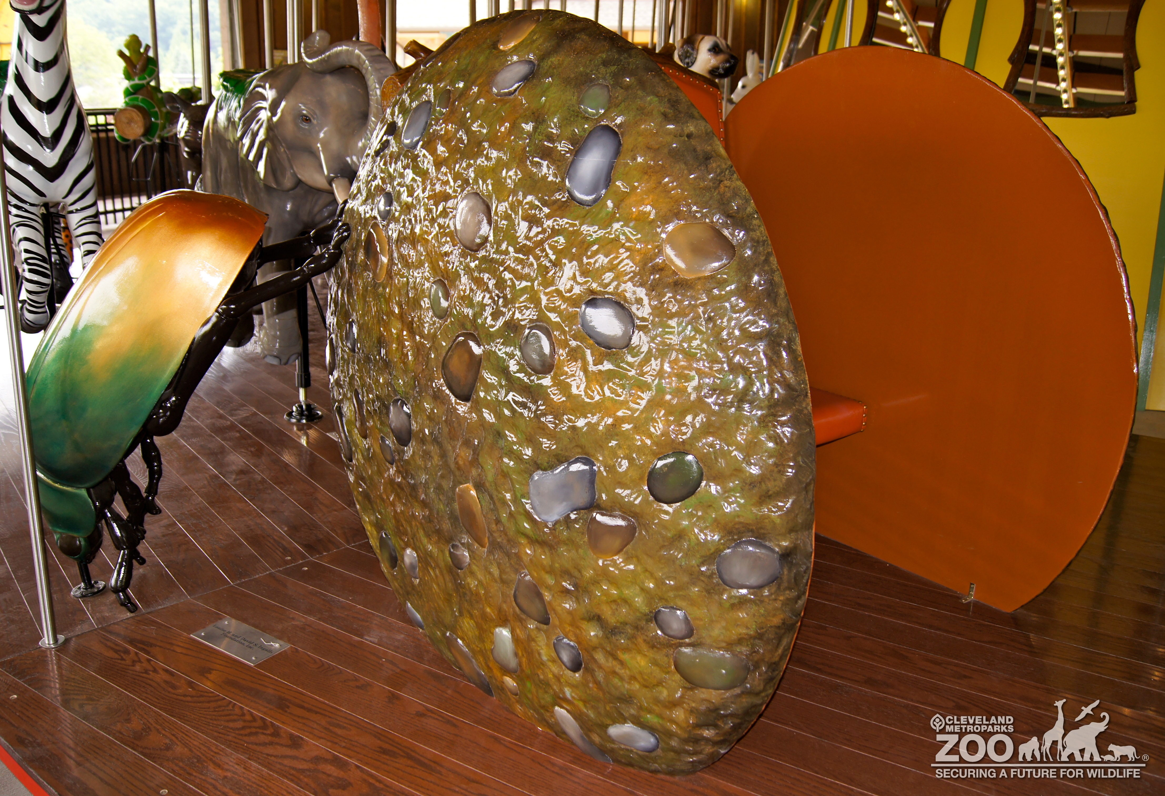 Close up view of Dung Beetle Chariot at Carousel attraction.