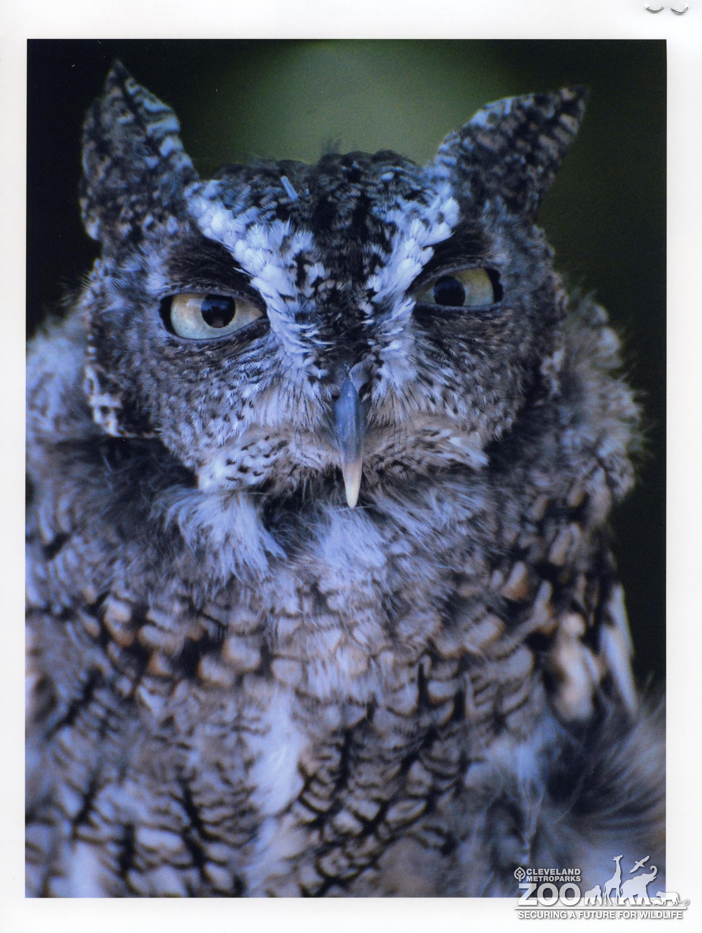 Great close up view on an Eastern Screech Owl looking directly into the camera.