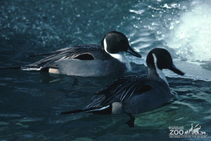 Photo of a pair of Pintail Ducks gliding in a pond.