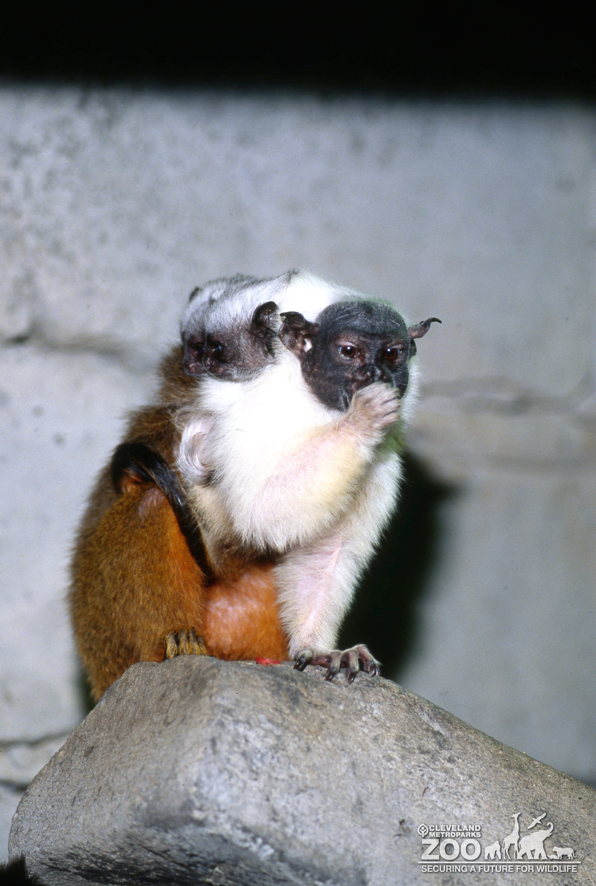 Images Tamarin, Pied Mom and Babies Sitting On Rock