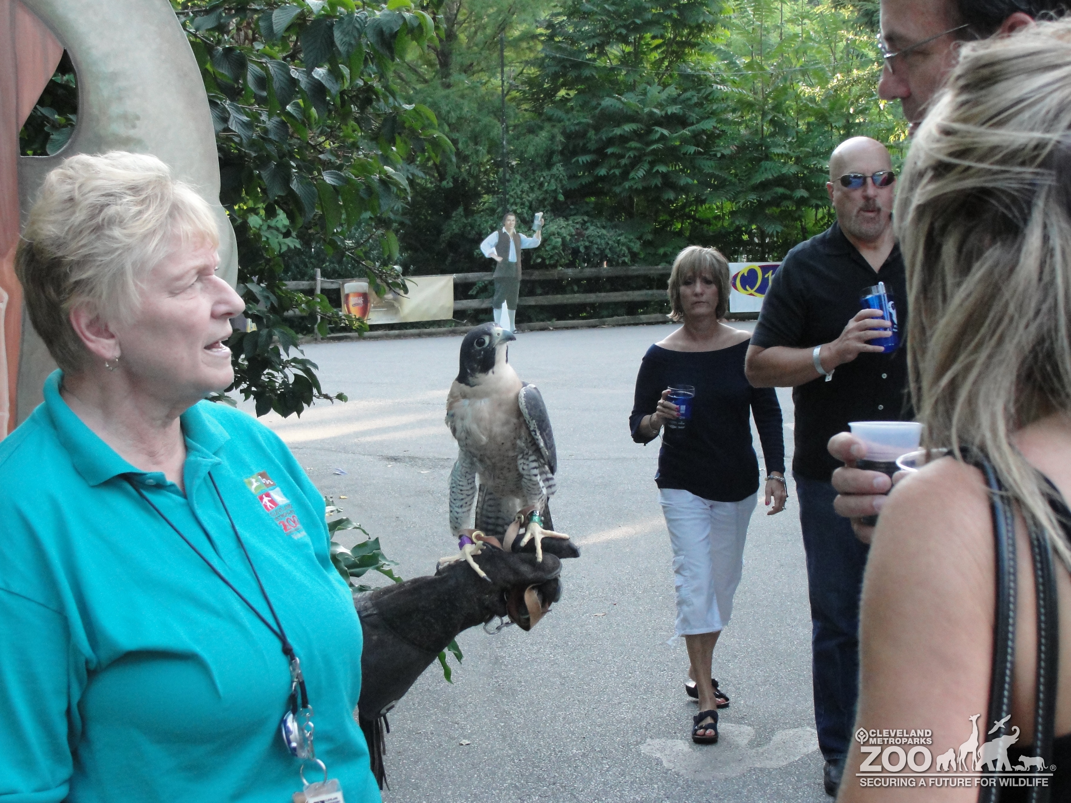 Images Visitors with Peregrine Falcon at Twilight at the Zoo