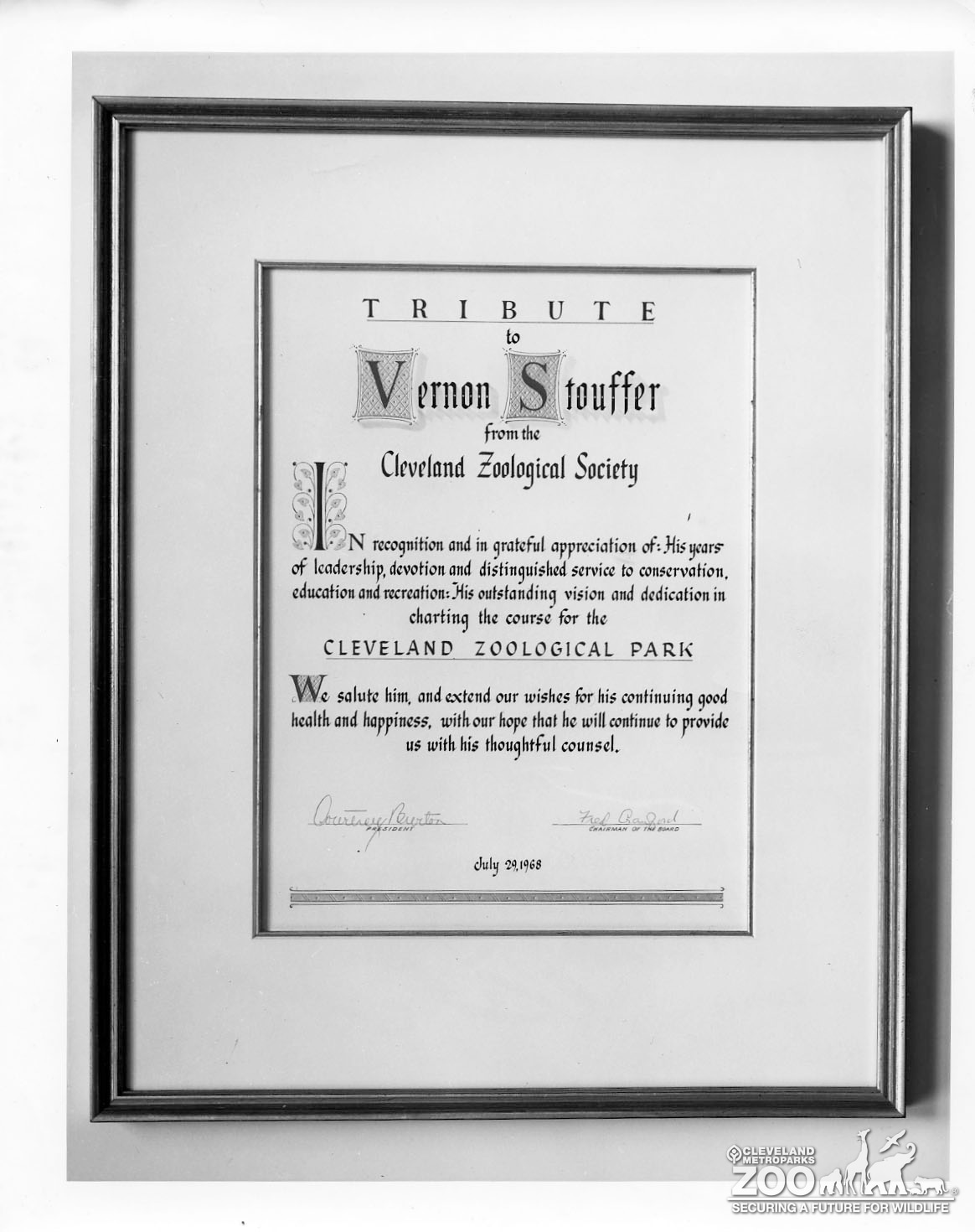 Images 1968 - Certificate for Vernon Stouffer