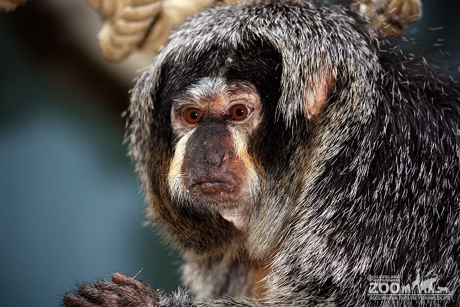 Also known as white-faced saki monkey, primate is looking a the camera with it brown eyes. This must be a female because it does have the distinctive white face that only males have.
