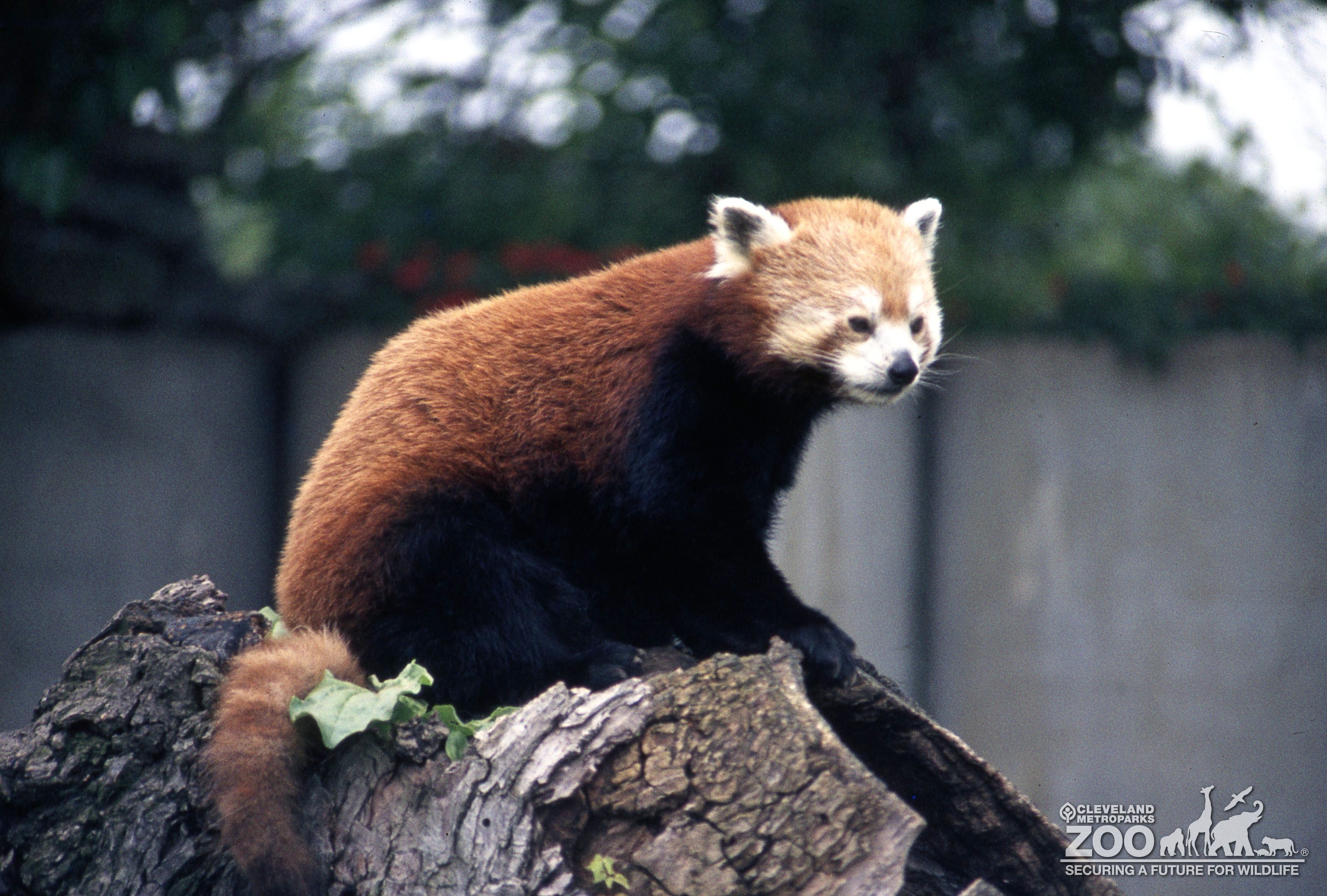 Images Red Panda Side View Sitting On Top Of Log
