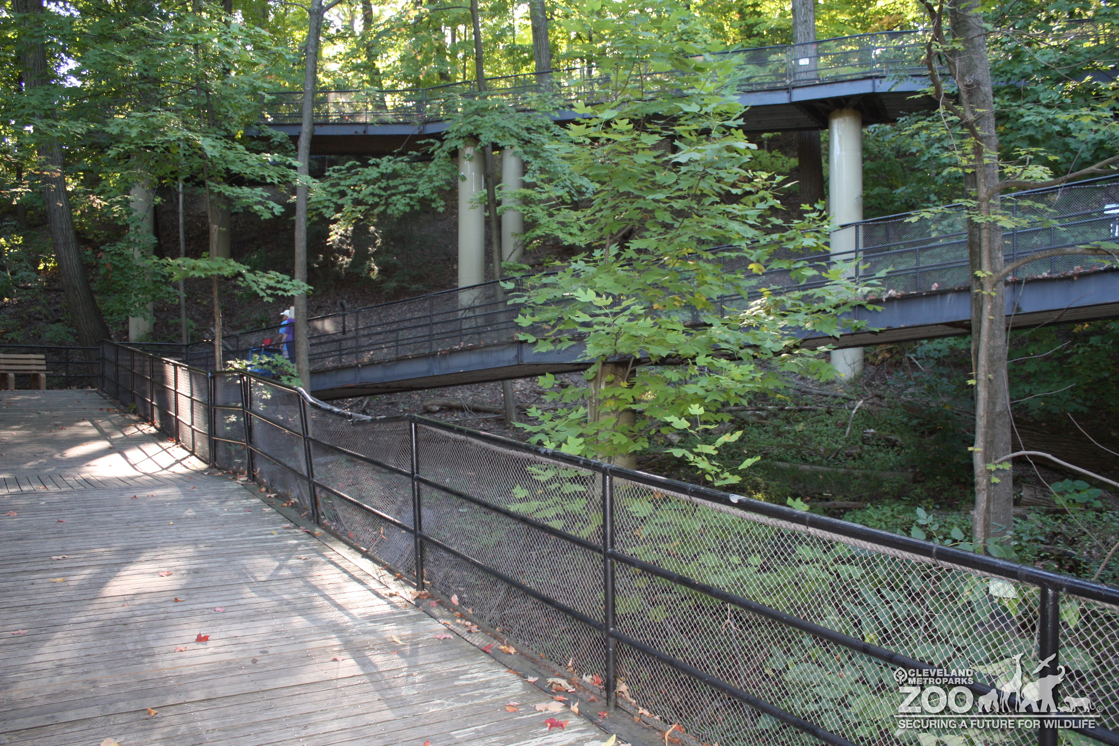 Deck walk has a tree off to the side and a person in view far away.