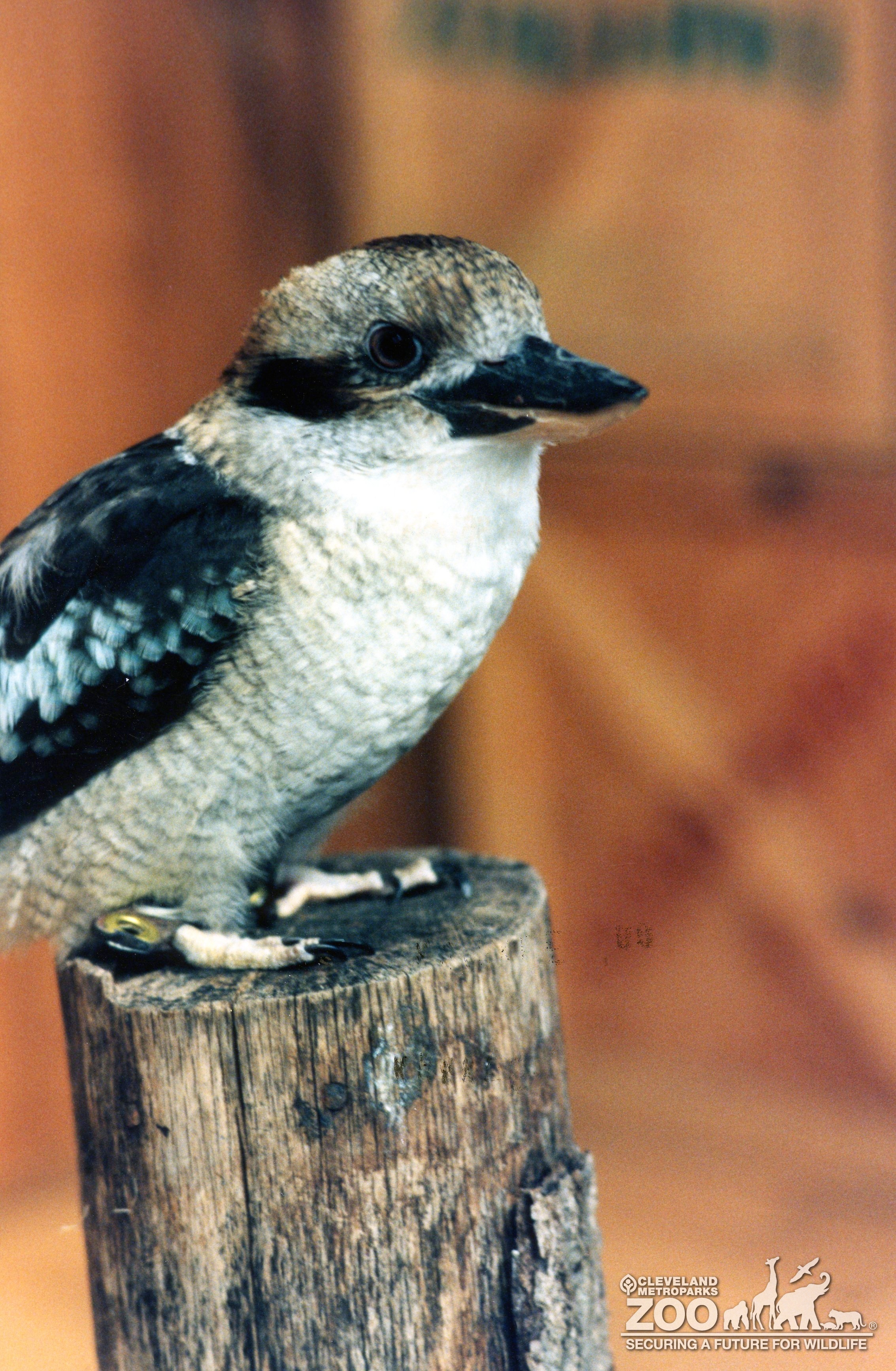 Kookaburra standing on a post outside. This sturdy bird has a strong beak. It is part of the kingfisher family.