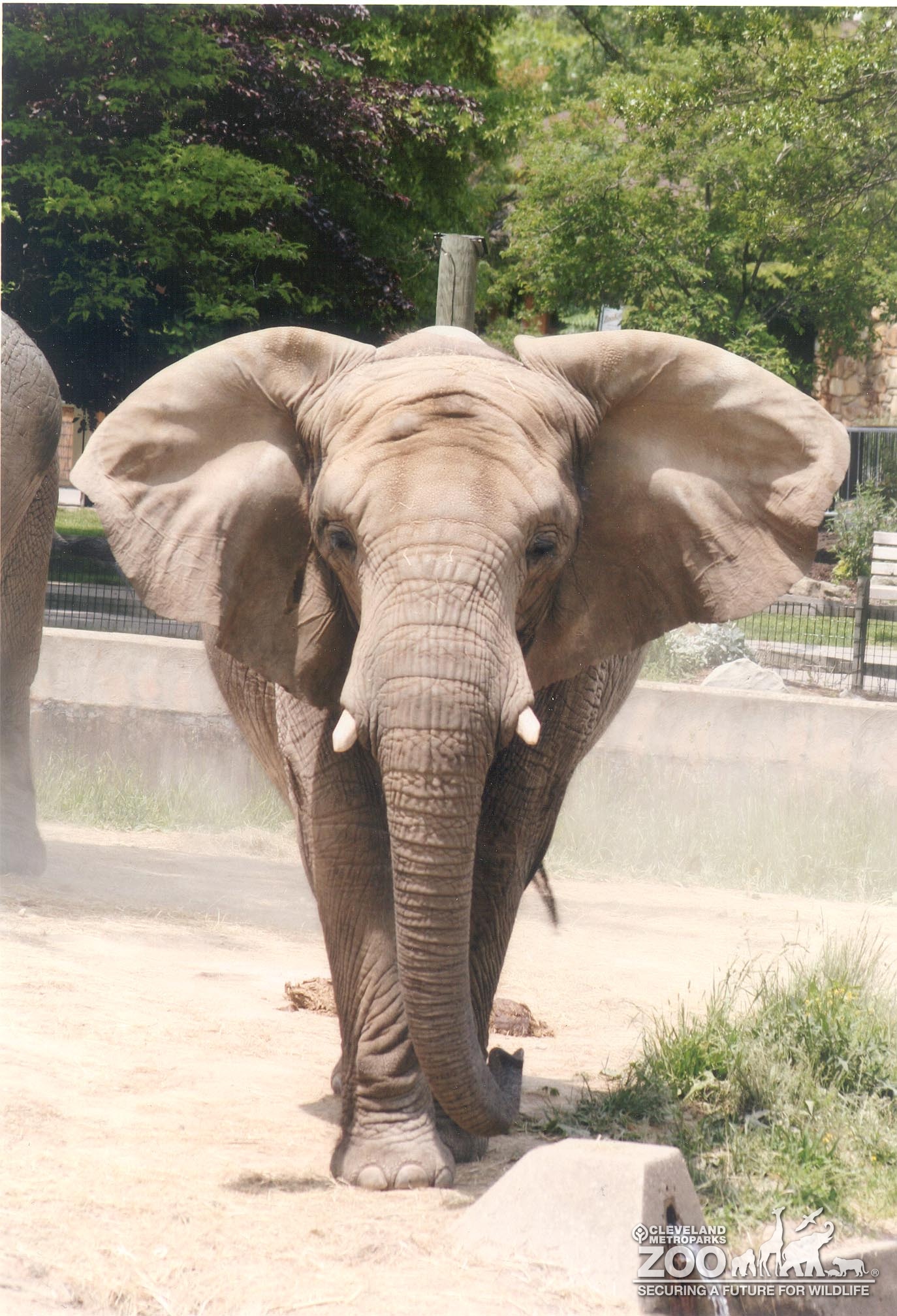 Photo of an Elephant with it's ears out. It is near the Old Pachyderm Building.