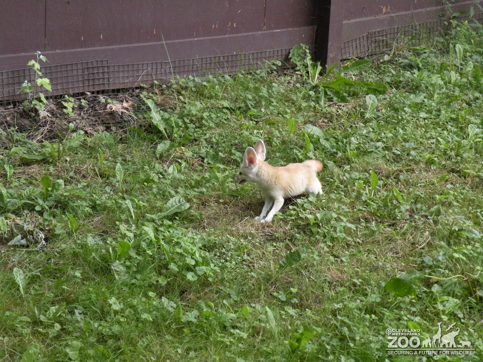 Distant view of a Fennec Fox in a grassy area.