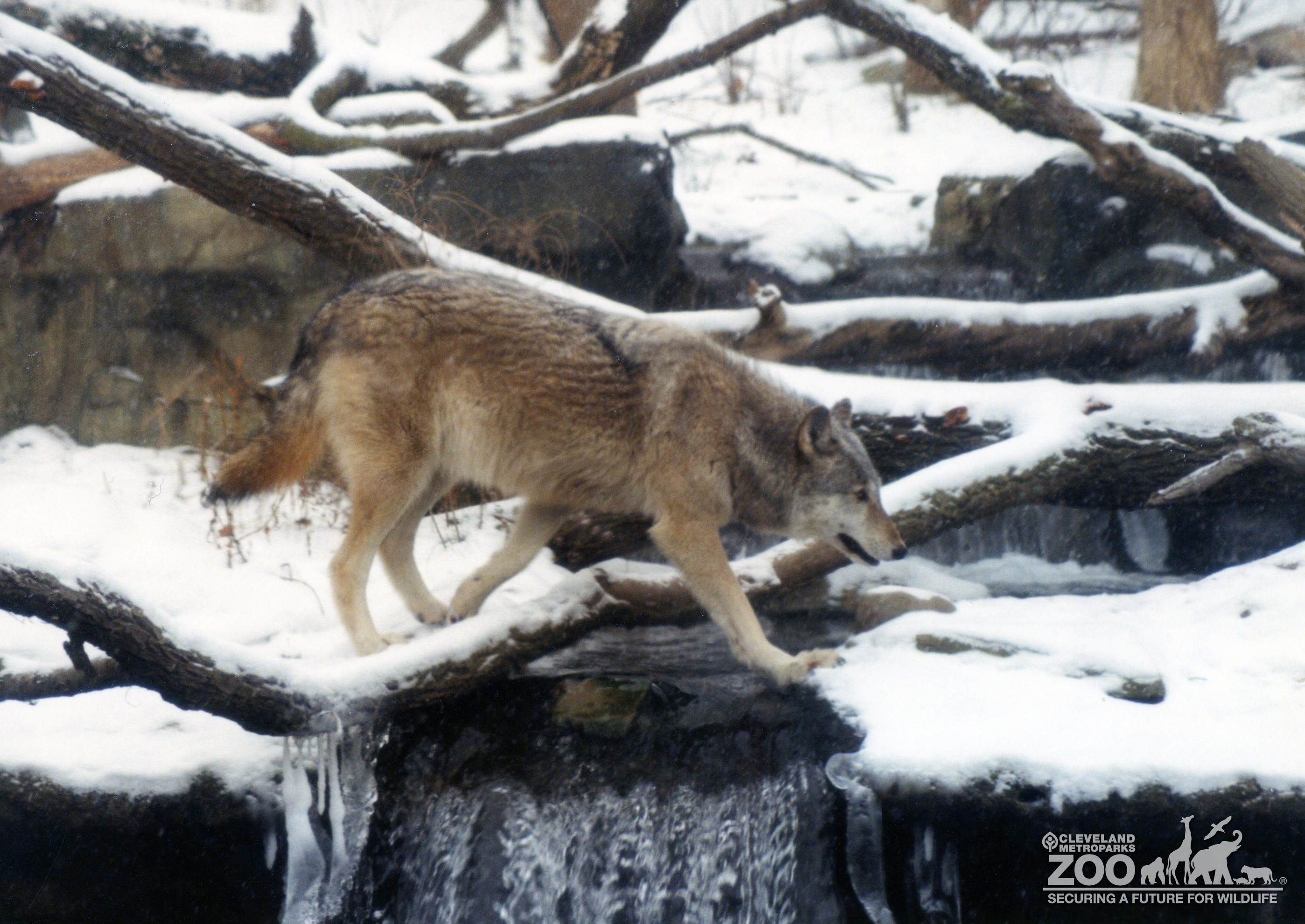 Mexican Gray Wolf Crossing Over Falls 2