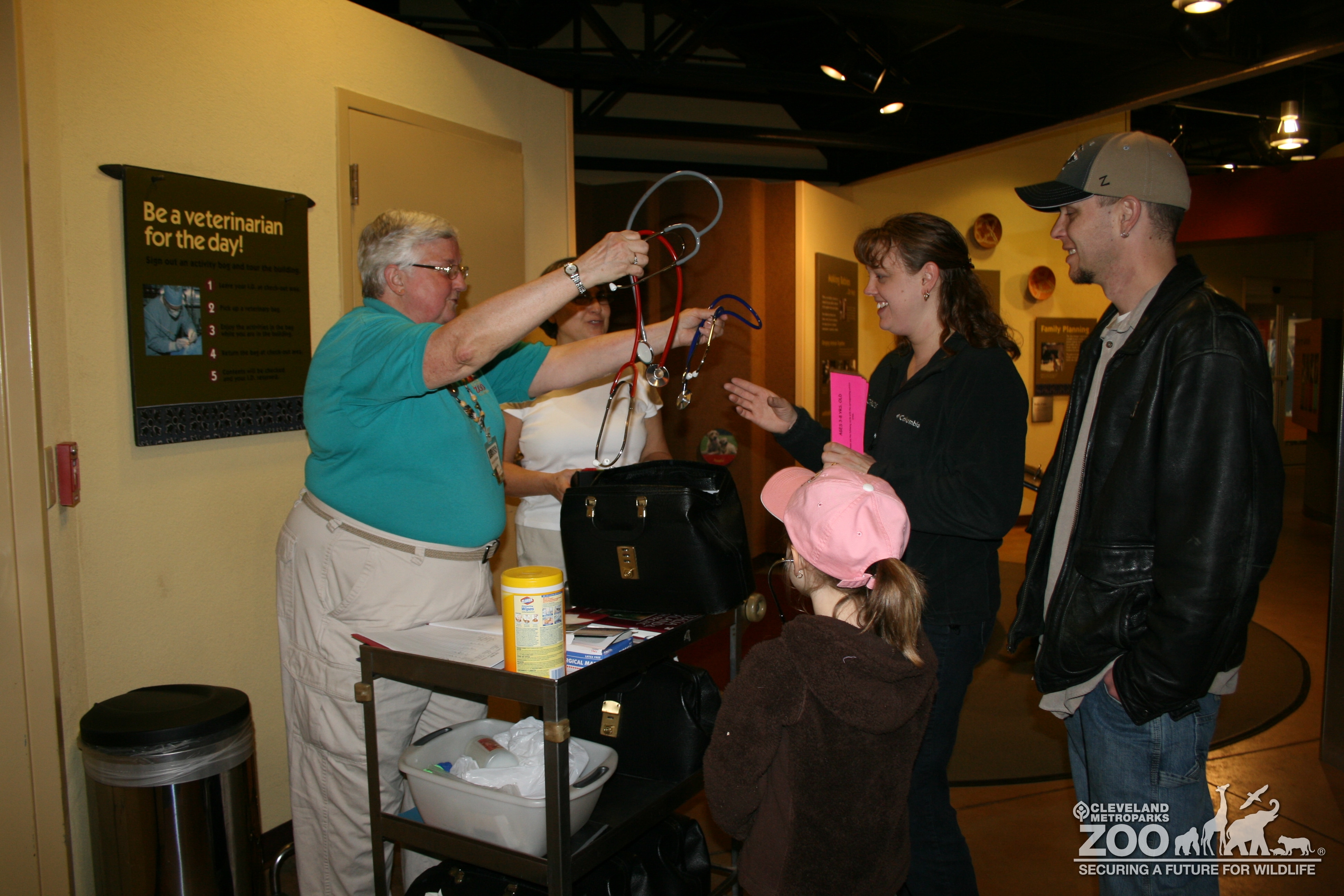 Photo of Zoo Volunteer Evie handing out Vet Bags to Zoo Guests.