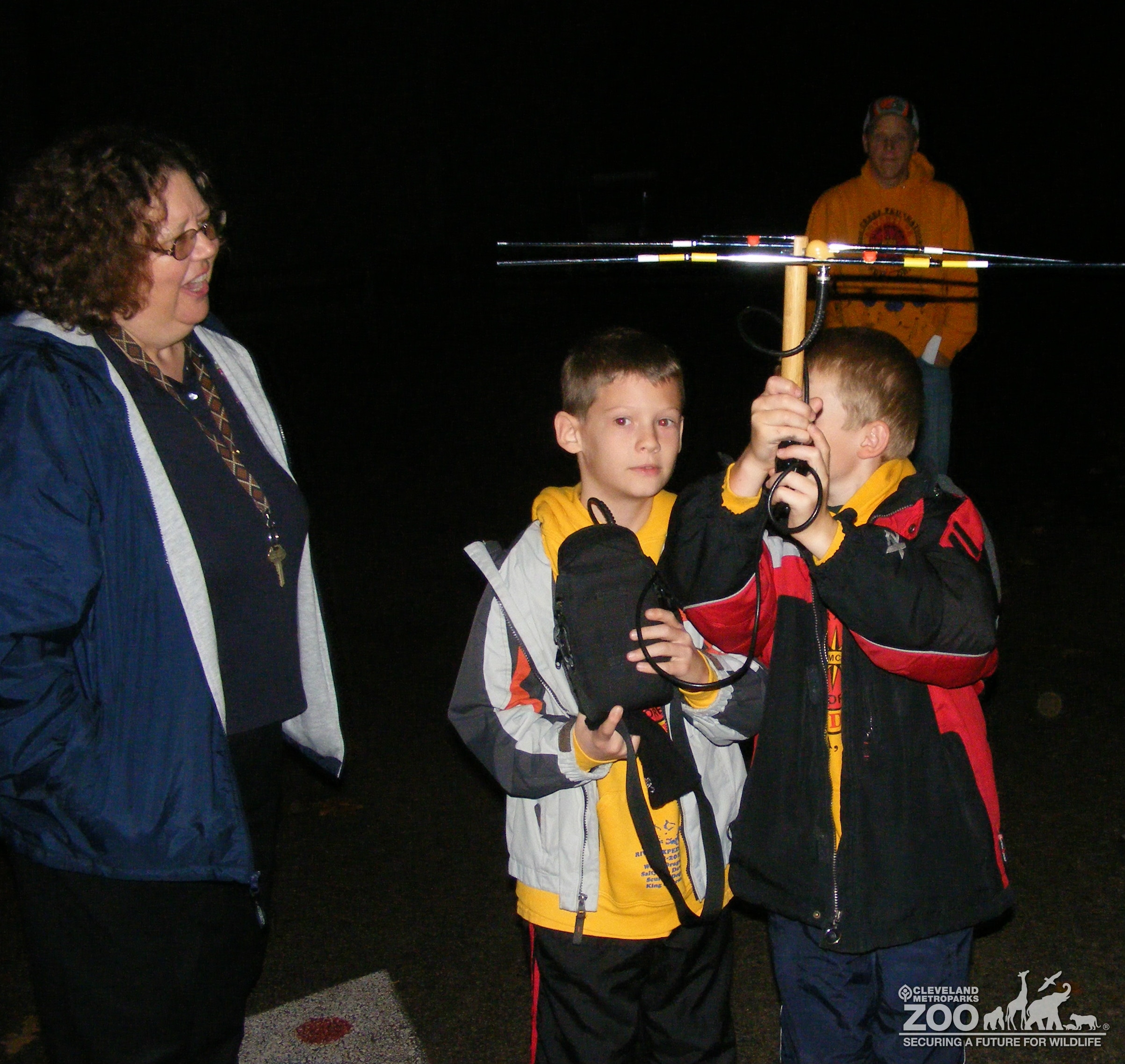 Photo shows children enjoying Telemetry Equipment at Night Tracks program.