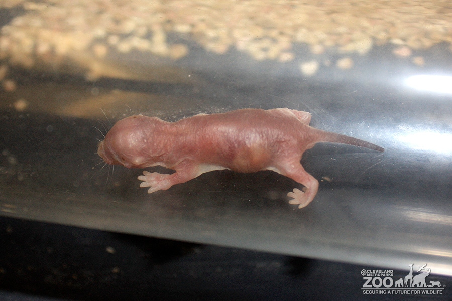 Naked mole-rat youngster in tunnel. This small hairless rodent has a tail.
