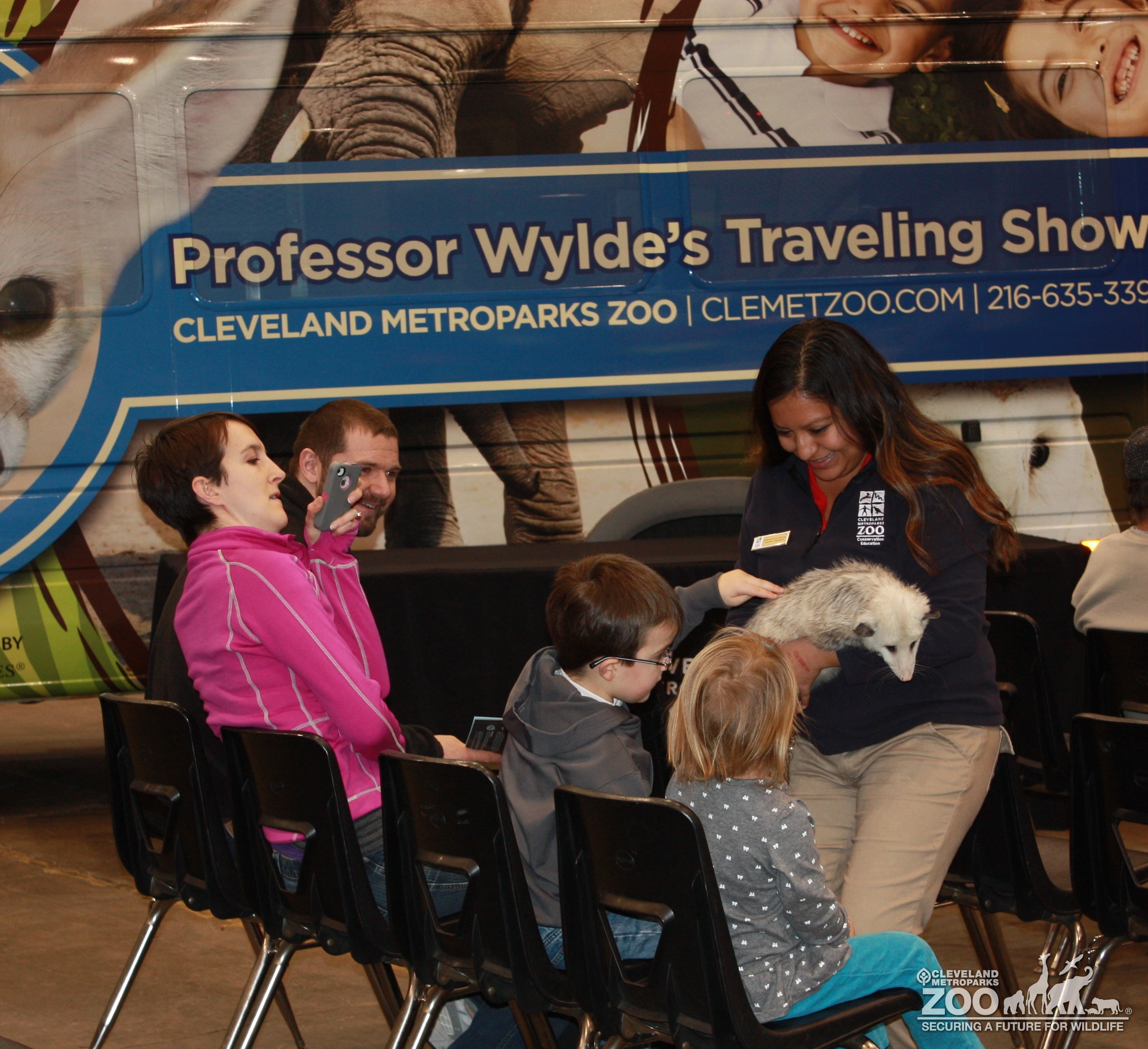 Images Adriana and Opossum with kids and mom takes pictures- 2014 RV Show