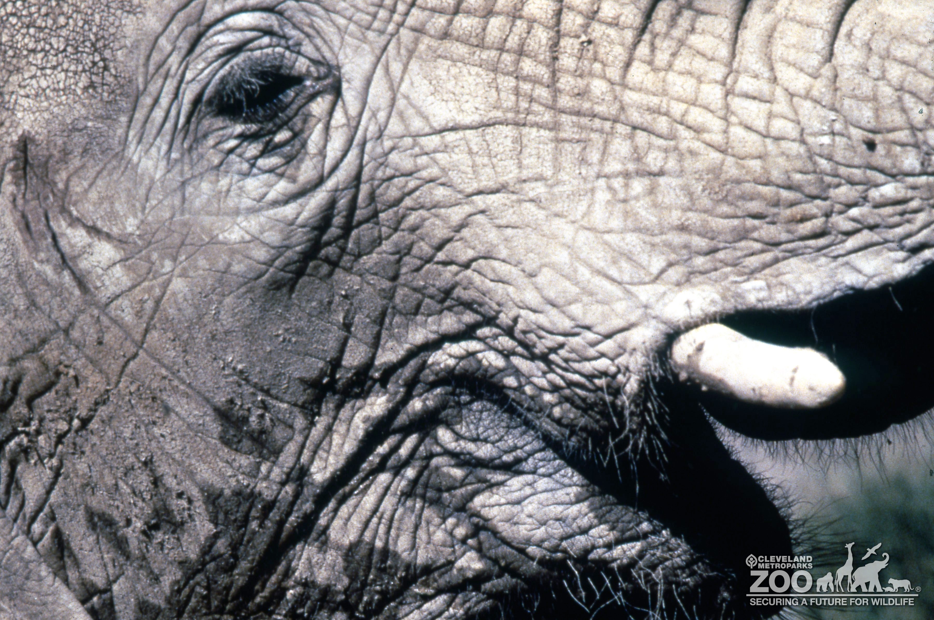 Close up view of African Elephant. Part of the Elephant's face and tusk is shown.