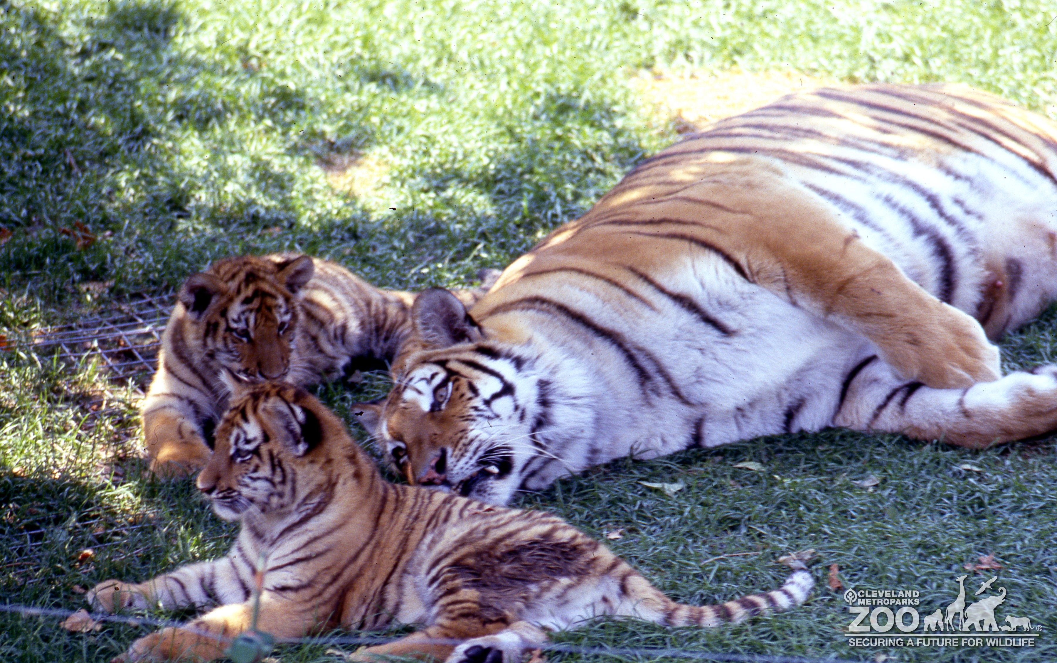 Images Tiger, Siberian Mom and Her Two Cubs