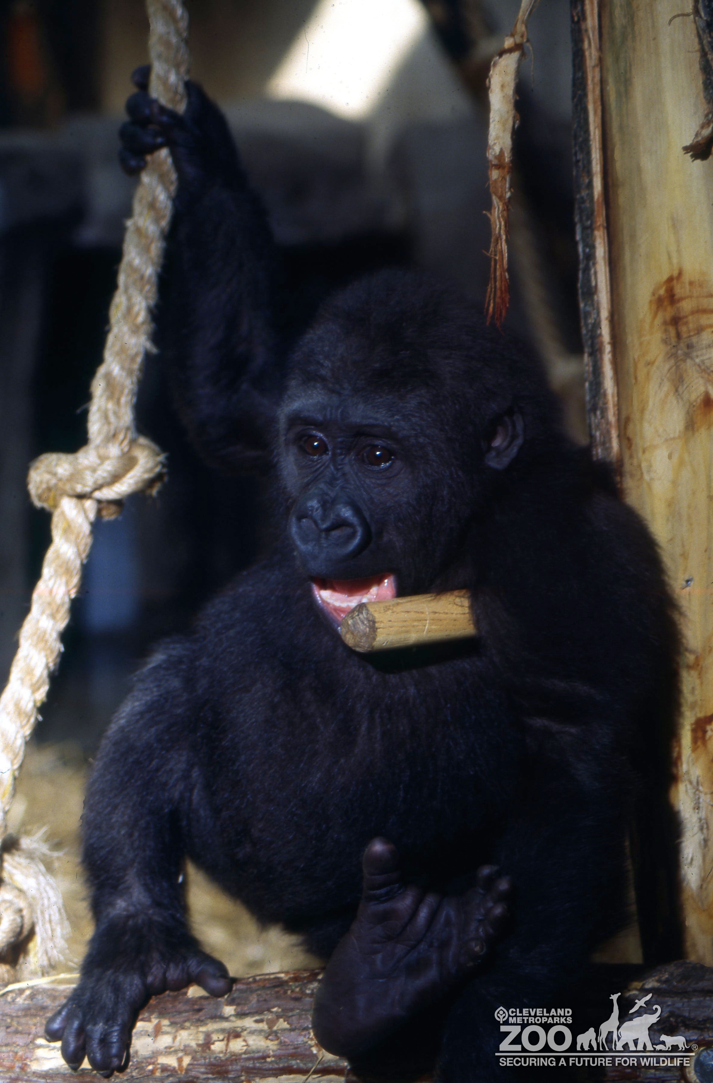 Images Gorilla, Western Lowland Juvenile Chewing On Post