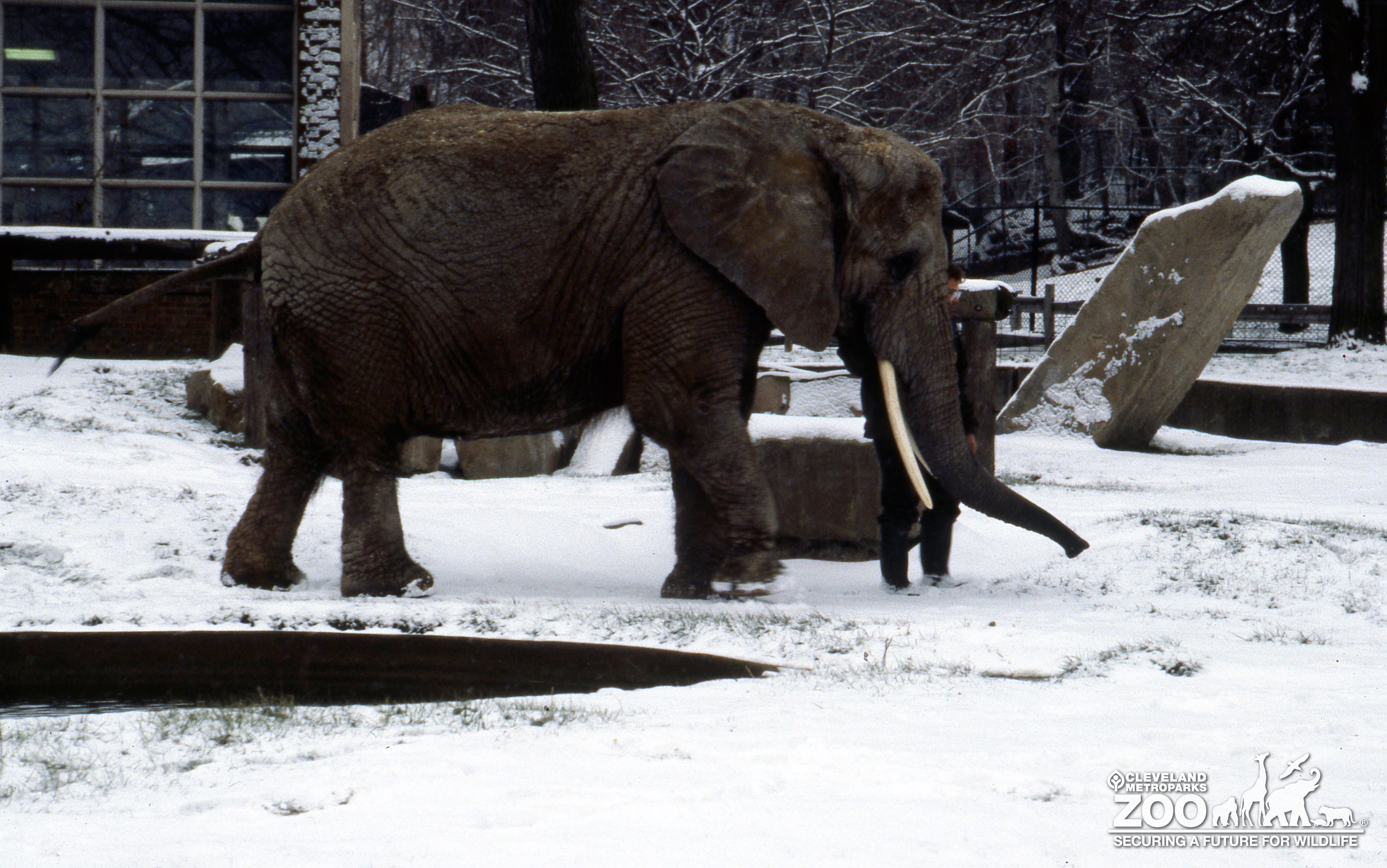Images Elephant, African Walking In The Snow With Keeper
