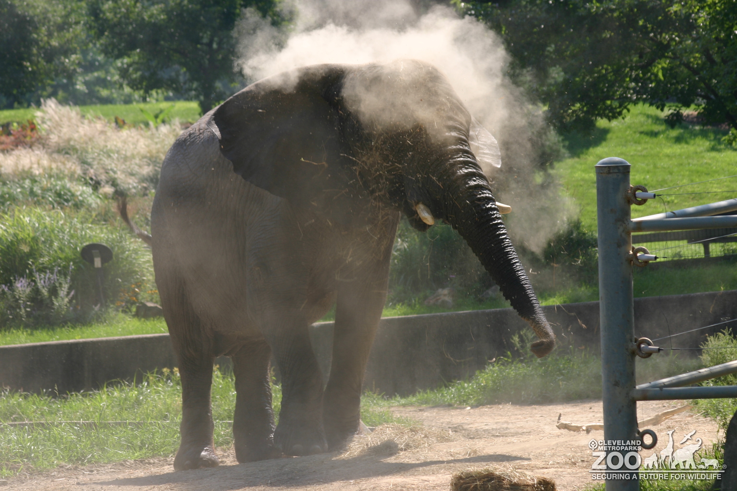 Photo of Elephant knocking the dust off at the Old Pachyderm Building.