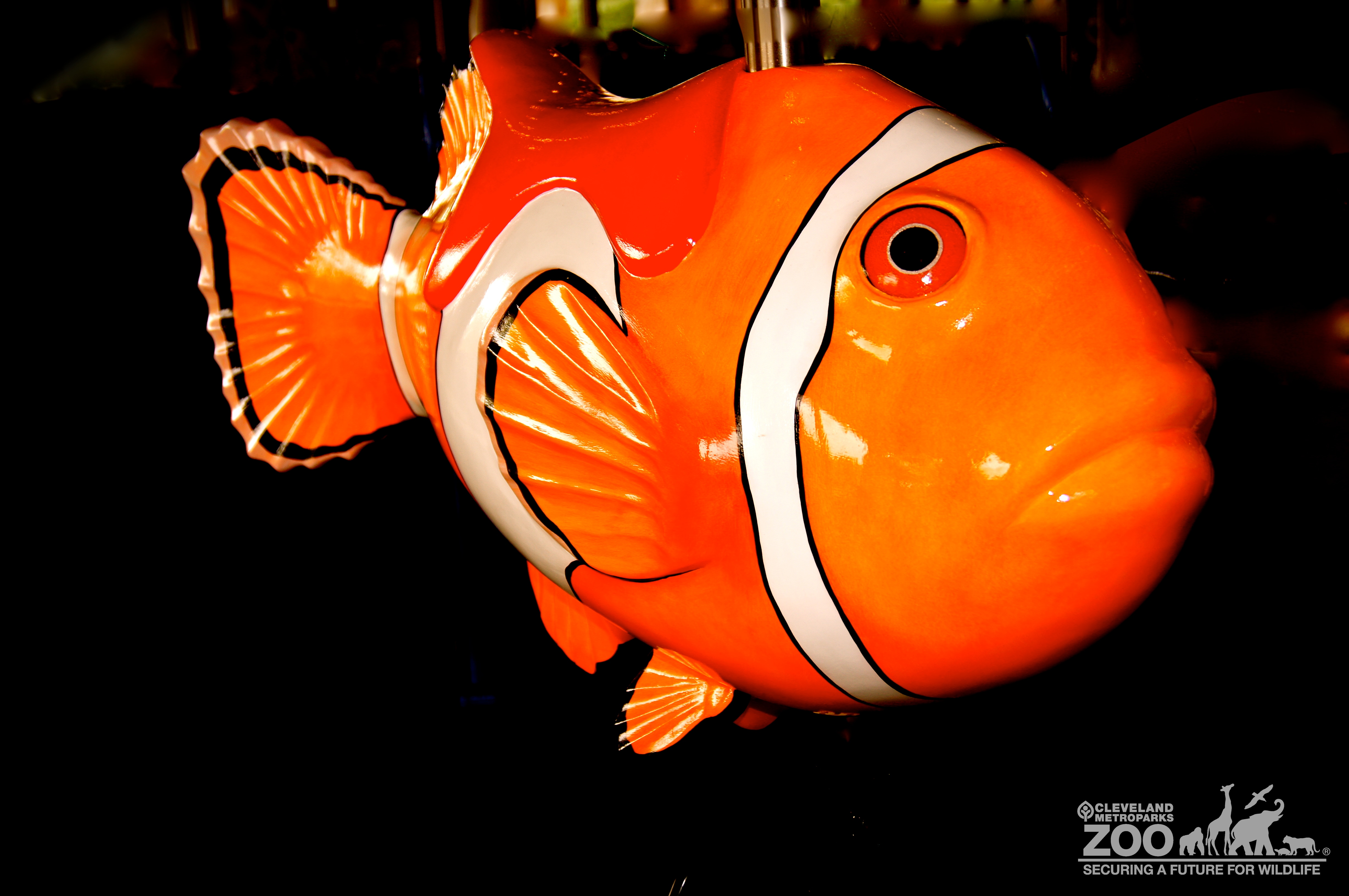 Photo shows a Orange Clownfish Ride at the Carousel attraction.