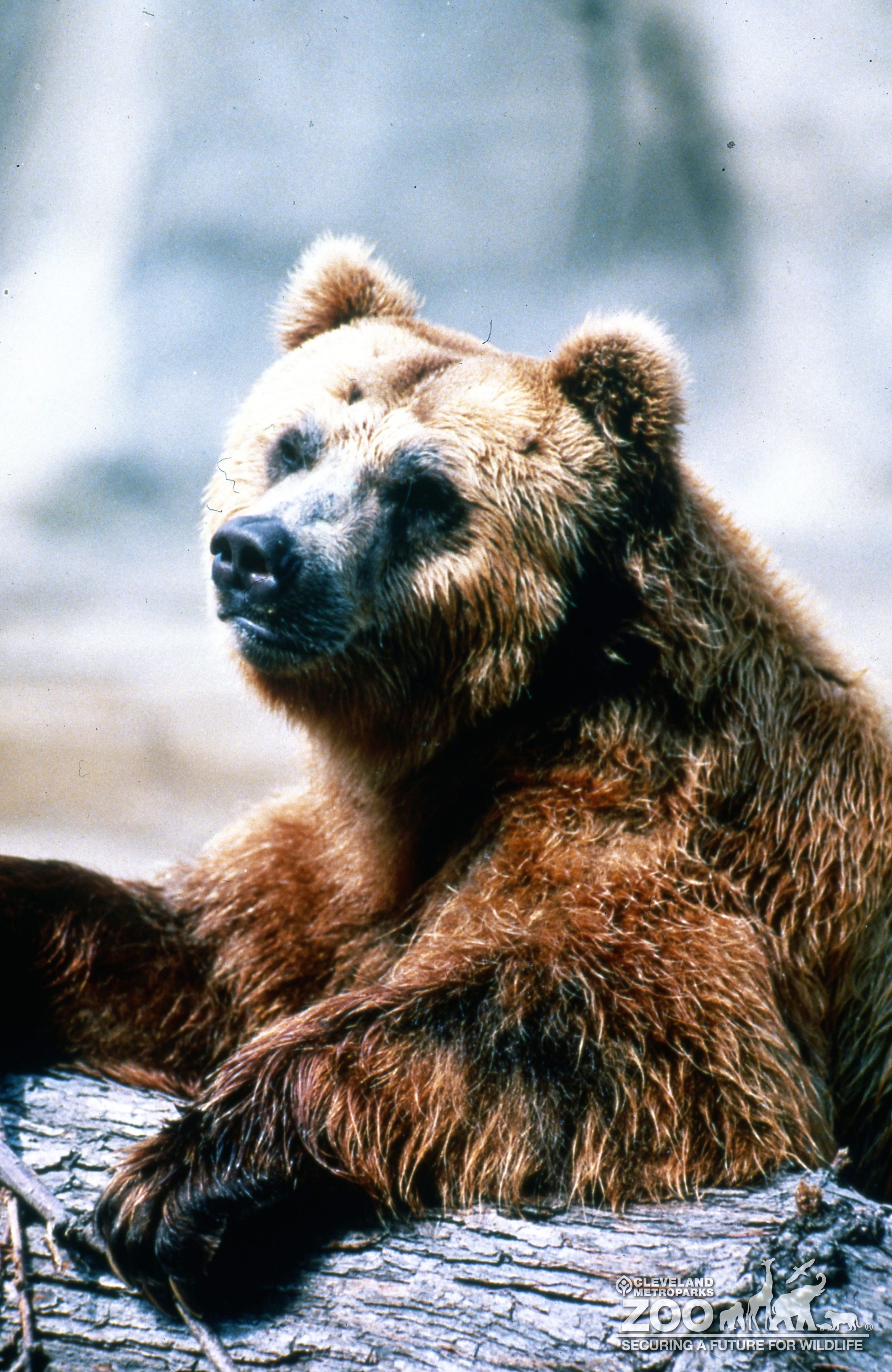 Images Grizzly Bear Up Close With Front Paws On Log