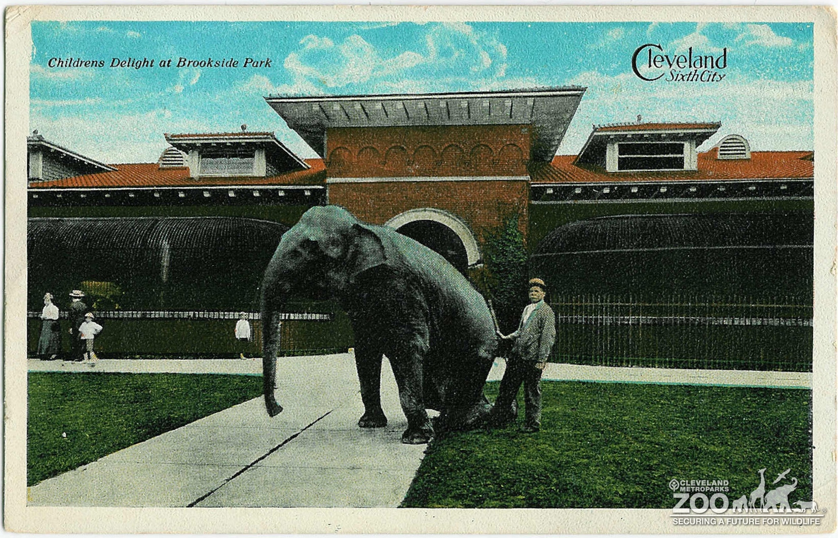 Images 1920 - A Post Card Depicting the Zoo's Old Main Building and an Asian Elephant
