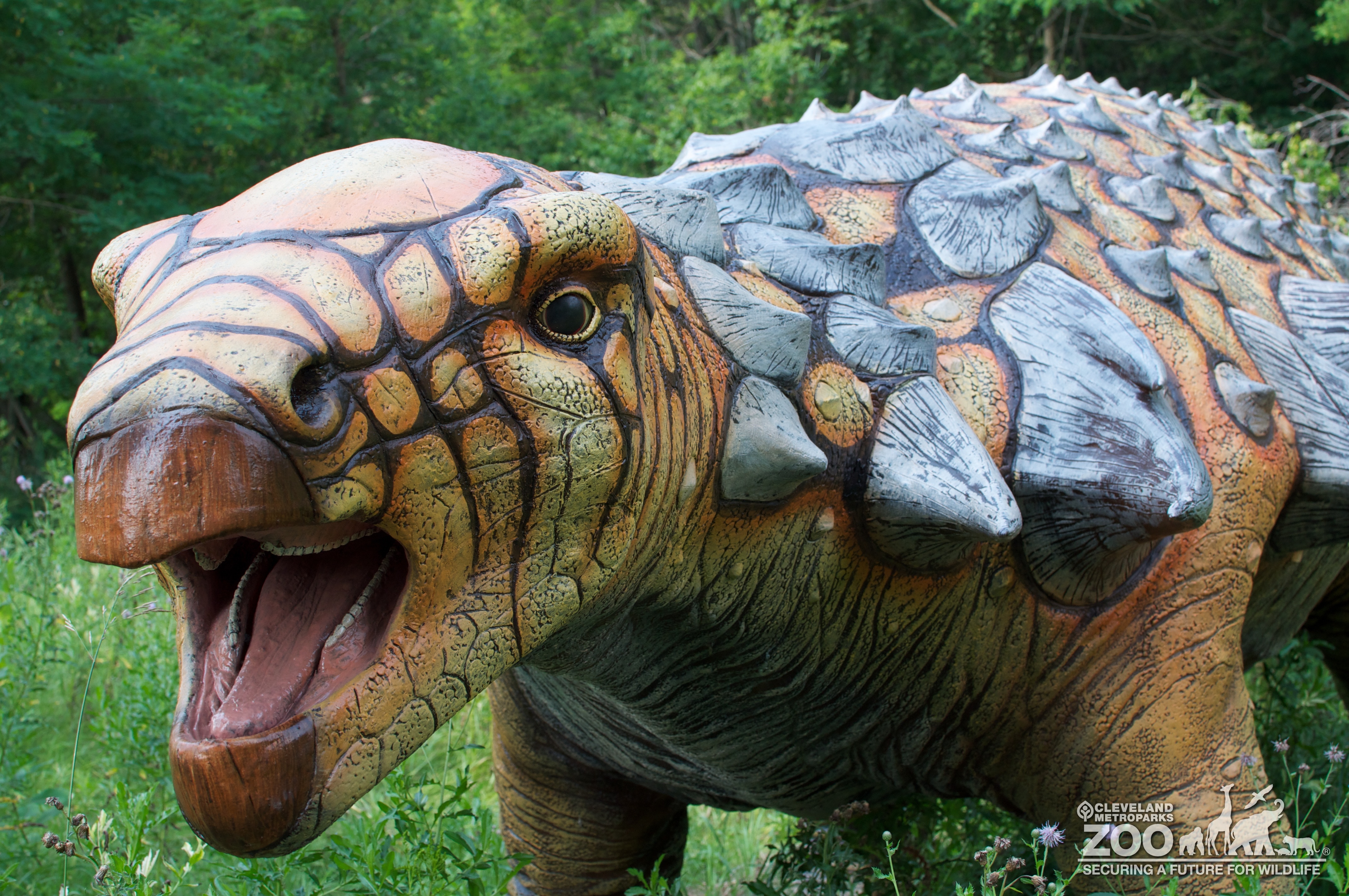 Edmontonia was very large and walked close to the ground to help protect itself against underbelly attacks. Edmontonia’s back, neck, and hips were covered in bony plates like armor, and it had spikes protruding from various parts of its body.